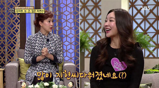 2일 밤 방송된 SBS ‘자기야-백년손님’(이하 백년손님)에서 김원희는 김지현에게 “많이 본인다워졌다”며 양악수술이 자리를 잡았다고 말했다.