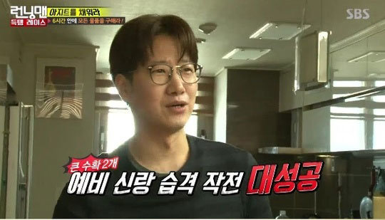19일 방송된 SBS ‘일요일이 좋다-런닝맨’에서는 멤버들의 아지트를 채우기 위한 ‘지인 득템 레이스’가 펼쳐진 가운데 유재석과 지석진은 짝을 이뤄 조우종의 집을 급습했다.