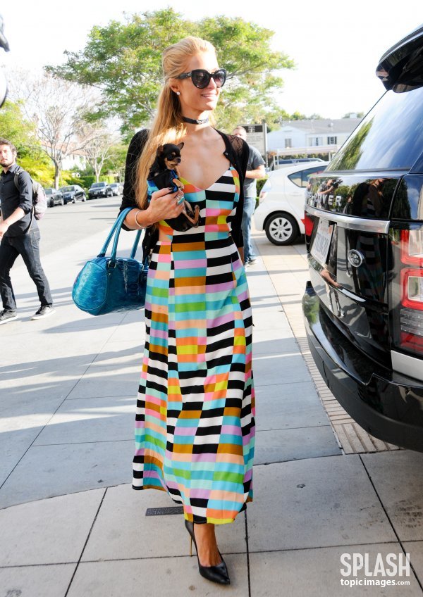 공개된 사진의 패리스 힐튼은 선글라스를 착용하고 독특한 컬러감과 패턴이 들어간 \'롱원피스\'를 입어 자유로운 패션을 선보였다.