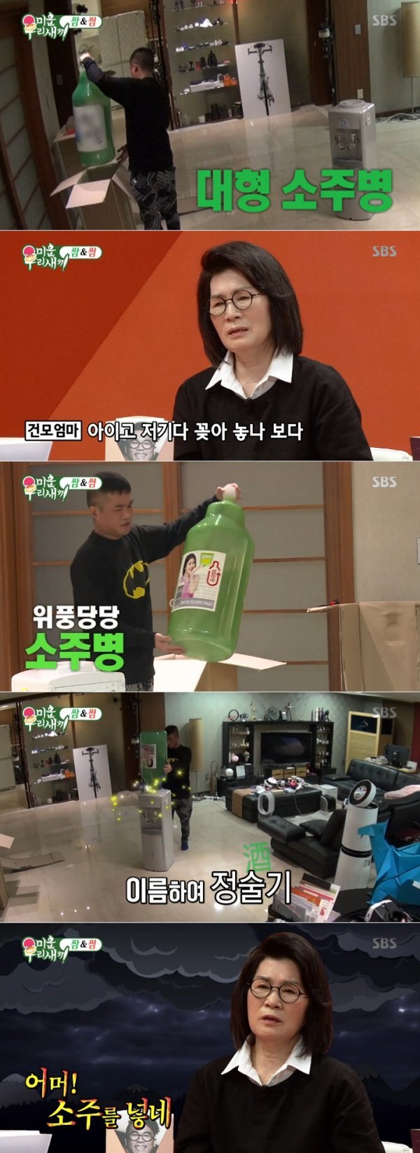 23일 밤 방송된 SBS ‘미운우리새끼’에서는 김건모가 대형 박스를 옮기는 모습이 그려졌다. 이날 그가 “대박”이라고 외치며 뜯은 박스 안에는 ‘정술기’(정수기+술)가 담겨 있었다.