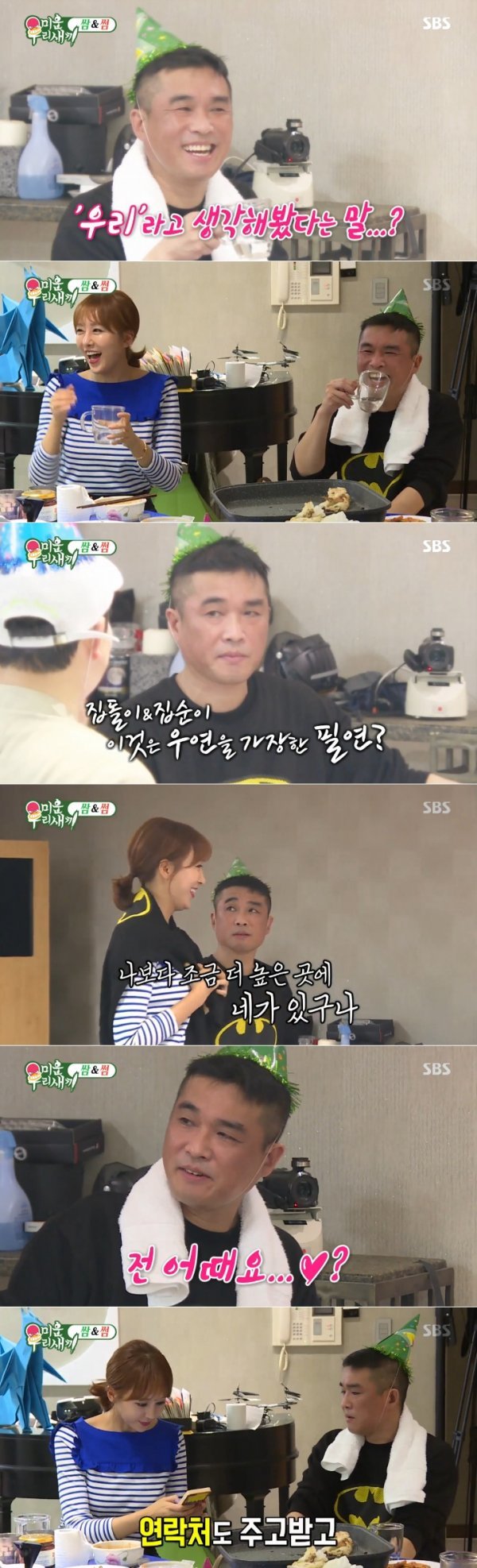 23일 밤 방송된 SBS ‘미운우리새끼’에서는 김흥국의 생일파티가 펼쳐진 가운데 김건모와 한영이 썸 타는 모습이 그려졌다.