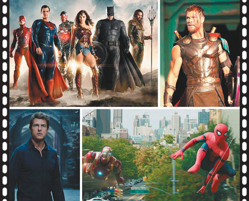 ‘시네마틱 유니버스’의 시대가 왔다. 마블, DC, 유니버설 등 할리우드 스튜디오들이 각기 다른 차별화 전략으로 전 세계 관객 확보에 나선다. 배트맨과 슈퍼맨, 원더우먼 등이 등장하는 DC유니버스의 ‘저스티스 리그’, 마블유니버스의 ‘토르:라그나로크’·‘스파이더맨 홈커밍’, 유니버설 다크유니버스 ‘미이라’.(왼쪽 위부터 시계방향으로) 사진제공|워너브라더스코리아·월트디즈니컴퍼니코리아·소니픽쳐스·UPI코리아