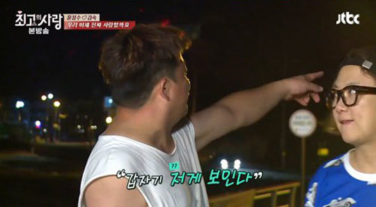 이어 주위를 두리번거리던 윤정수는 “갑자기 저게 보인다”며 모텔을 가리켰고, 김숙은 그의 뺨을 때리는 척 한 후 “무슨 소리를 하는 거야!”라고 소리쳤다.