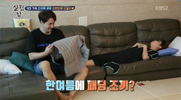23일 오후 방송된 KBS 2TV \'살림하는 남자들2\'에서 이세미는 집에 임우혁과 단둘이만 남게 되자 제일 먼저 패딩 조끼를 훌러덩 벗어던졌다.