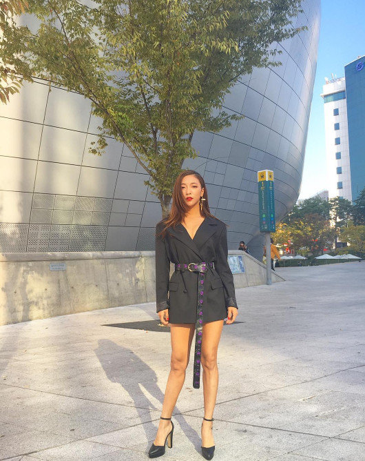 걸그룹 에프엑스의 루나가 완벽한 비율을 자랑한다. 키는 크지 않지만 작은 얼굴과 긴 다리가 조화를 이루고, 길게 늘어뜨린 벨트가 착시현상까지 일으켜 실제보다 훨씬 커 보인다. 부러질 것 같은 얇은 각선미를 과시하며 독특한 패션 스타일로 한껏 멋을 내는 루나는 시크한 표정까지 완벽하다.