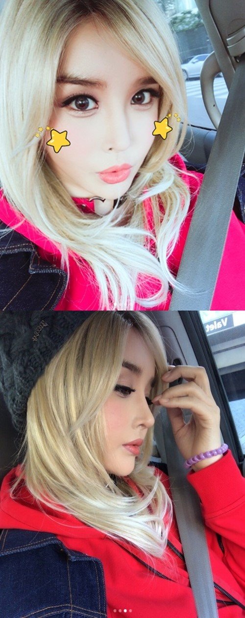 공개된 사진 속 하리수는 금발 머리에 화려한 메이크업을 했다. 또한 청-청 패션을 선보여 눈길을 끈다.