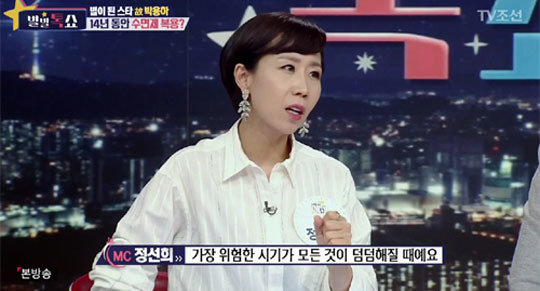 24일 오후 방송된 종합편성채널 TV조선 \'별별톡쇼\'에서 고 박용하에 대한 이야기를 나누던 정선희는 "사람들이 우울증에 관련된 많은 이야기를 하는데"라고 입을 열었다.