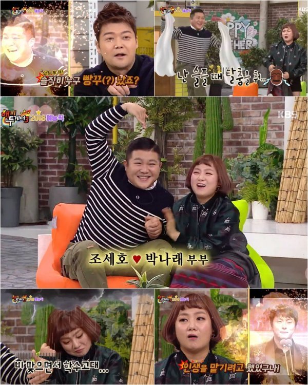 목요일 밤의 터줏대감 KBS 2TV ′해피투게더3′(이하 ‘해투3’)의 8일 방송은 ‘2018 예능픽(PICK)’이라는 특집명 하에 ‘해투동’ 단독으로 꾸며졌다. 특히 이날 방송에서는 2018년 예능센터 자리를 노리는 예능거물 4인방 조세호-박나래-허경환-박지선이 출연해 웃음으로 안방극장을 후끈 달아오르게 만들었다. 이 가운데 조세호-박나래는 단독플레이면 단독플레이, 콤비플레이면 콤비플레이 할 것 없이 웃음을 빵빵 터뜨리며 ‘대유잼’을 합작했다.