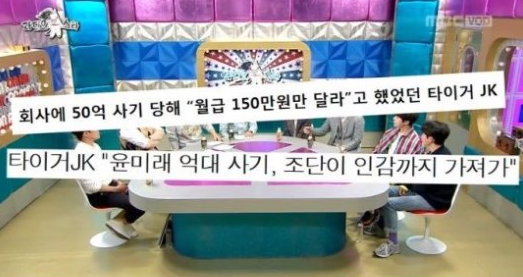 이날 윤미래와 타이거JK는 과거 50억 원대 사기 당한 일을 담담하게 털어놨다. 윤미래는 "데뷔 후 두 번째 당한 사기였다"라면서 "첫 번째는 어린 시절 잘 모르는 상황에서 당한 사기였다. 이번에는 평소에 믿었던 사람에게 당했다"라고 털어놨다.