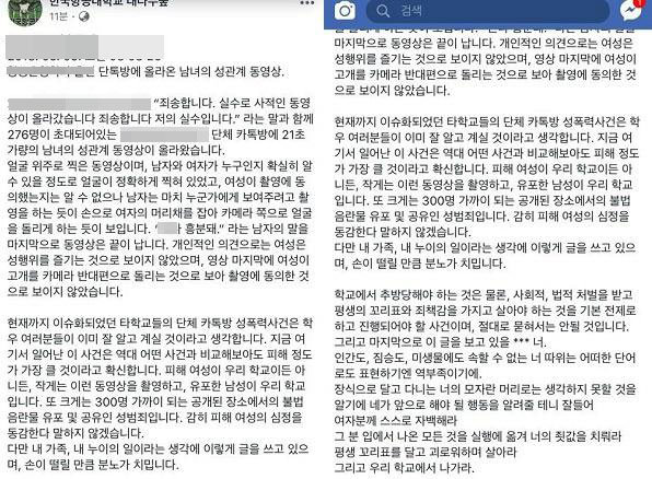 이와 관련해 한국항공대 측은 한 매체와의 통화에서 “단톡방 성관계 동영상 유출은 사실이다”고 밝혔다.