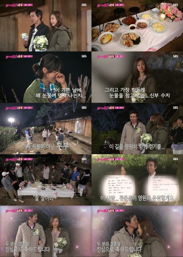 이날의 하이라이트는 청춘들이 정성껏 준비한 김국진, 강수지의 깜짝 결혼식이었다. 정선 첩첩 산중에서 예상치도 못했던 스몰 웨딩을 선물받은 두 사람은 처음에는 당황한 기색이 역력했으나 이내 강수지가 꾹꾹 참았던 눈물을 흘리자 주위를 한순간에 눈물바다로 만들었다.