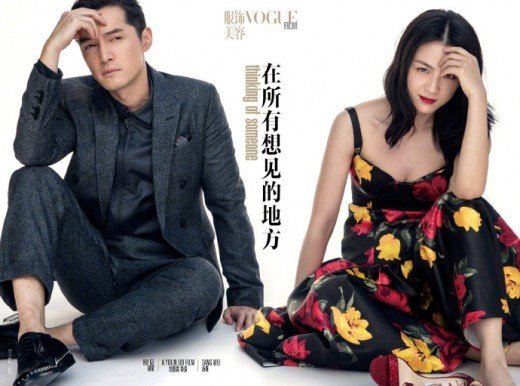탕웨이는 최근 중국 보그 필름 매거진과 촬영을 진행했다. 류위린 감독의 신작 \'재소유상견적지방\'에 함께 출연하게 된 인연으로 후거와 화보에서 또다시 호흡을 맞췄다.