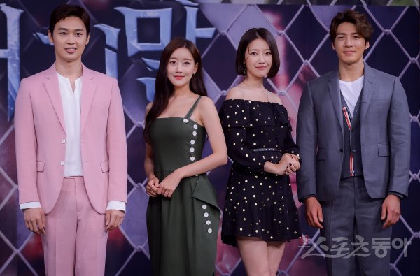 배우 이종문과 오승아, 서혜원, 김경남(왼쪽부터)이 21일 서울 마포구 상암동 MBC에서 진행된 MBC 새 일일드라마 ‘비밀과 거짓말’ 제작발표회에서 포즈를 취하고 있다.