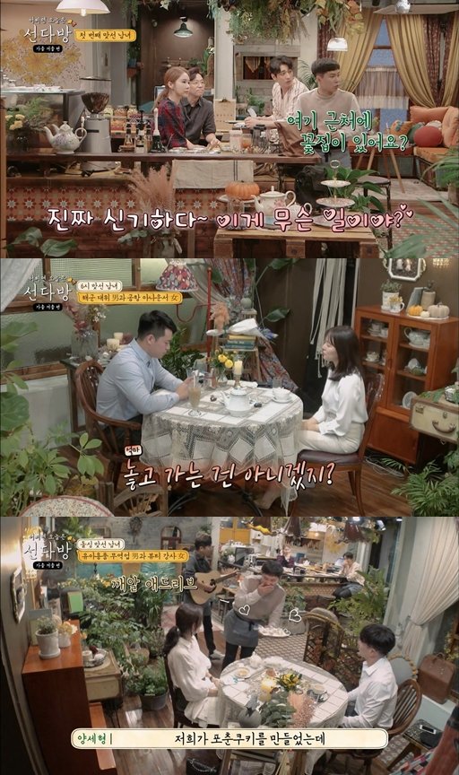 이날은 이적, 유인나, 양세형, 윤박의 카페지기로서의 활약도 예고돼 기대를 모은다. 출연자들의 맞선 성공을 위해 직접 포춘 쿠키를 만드는가 하면 이적과 양세형은 즉석에서 포춘 쿠키송을 작사, 작곡해 맞선 남녀의 긴장을 풀어주. 유인나는 특유의 섬세함으로 맞선 남녀들의 심리를 꿰뚫으며 진정성 어린 조언을 쏟아내고 유일한 기혼자 이적은 돌싱 남녀의 고민 하나하나에 깊이 공감, 어느 때 보다도 복잡 미묘한 두근거림을 선사할 전망이다.