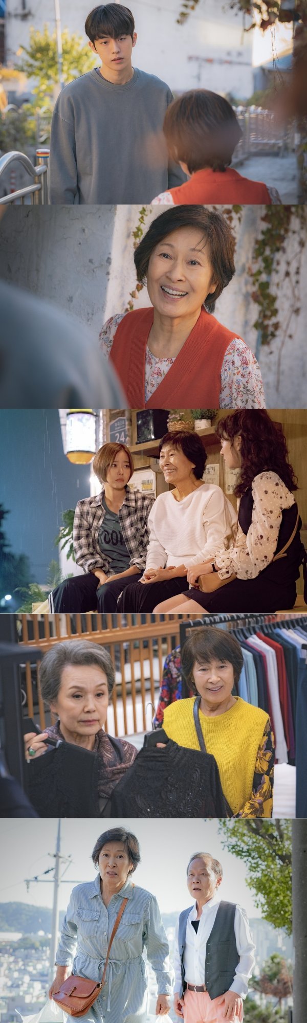 또 다른 사진 속 모태 절친 이현주(김가은 분), 윤상은(송상은 분)과 수다 삼매경에 빠진 모습에서는 몸은 70대지만 스물다섯 청춘의 풋풋한 에너지가 느껴진다. 노인 홍보관에서 만난 새로운 친구들 ‘노(老)벤져스’와의 케미는 한결 서사가 담겨있다.