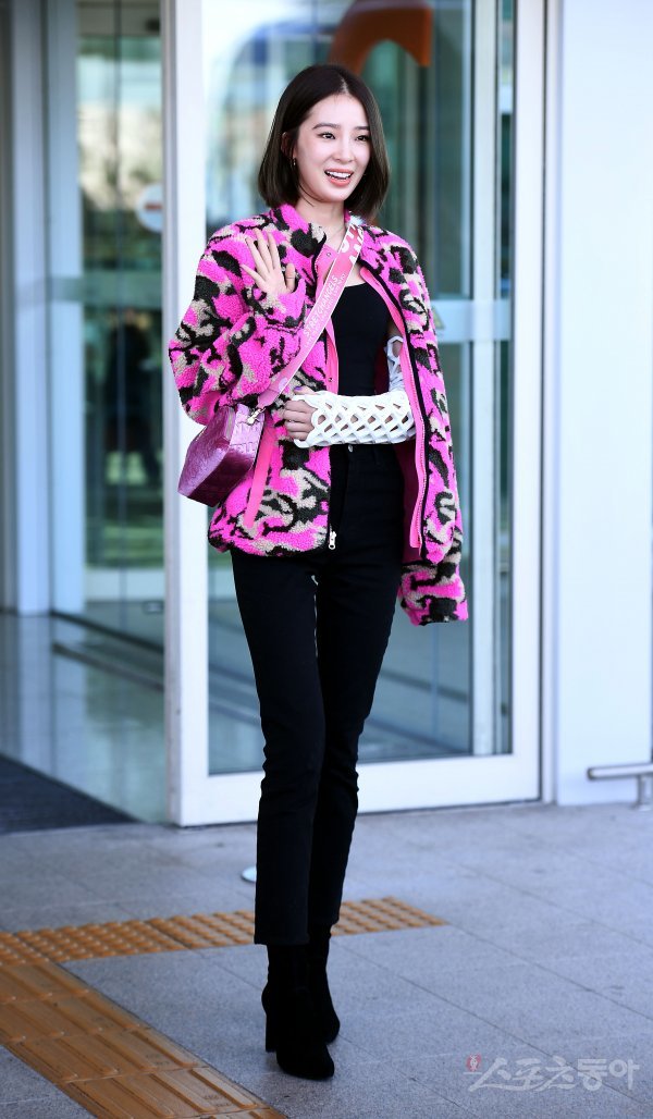 아이린이 23일 인천국제공항을 통해 패션쇼 참석차 파리로 출국에 앞서 카메라를 향해 포즈를 취하고 있다.