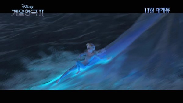 성난 파도를 향해 거침없이 돌진하는 엘사는, 전편 \'겨울왕국\'에서 자신이 지닌 마법의 힘을 두려워하던 모습에서 벗어나 이제 스스로 힘을 통제할 수 있게 된 한층 성장한 면모로 강렬한 존재감을 보여준다.
