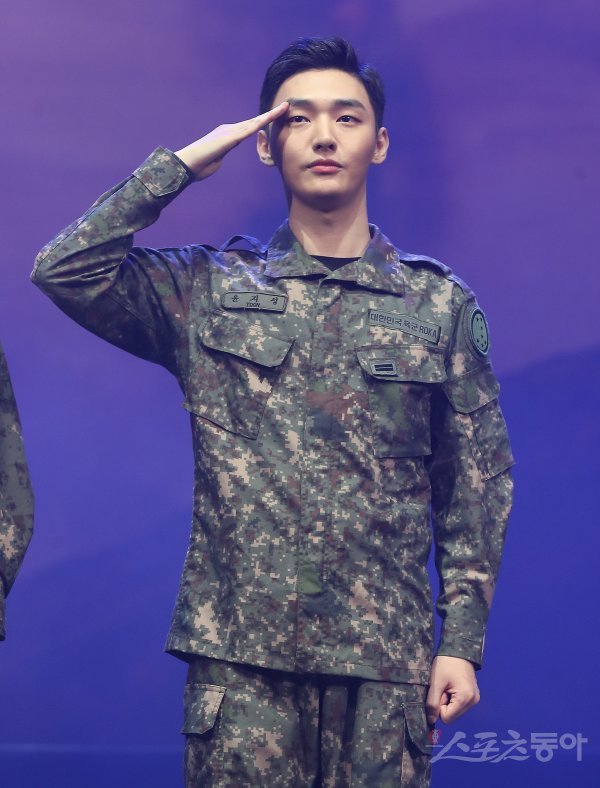윤지성이 24일 서울 용산구 한남동 블루스퀘어 아이마켓홀에서 열린 2019 육군 창작 뮤지컬 ‘귀환’ 프레스콜에서 포토타임을 갖고 있다.