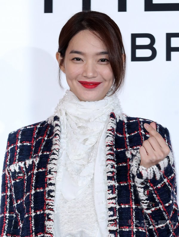 배우 신민아가 24일 서울 강남역 인근 한 뷰티 매장에서 열린 한 뷰티 브랜드의 팝업 이벤트 포토월 행사에서 포즈를 취하고 있다.