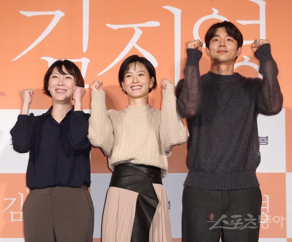 김도영 감독과 배우 정유미, 공유(왼쪽부터)가 30일 서울 광진구 롯데시네마 건대입구에서 열린 ‘82년생 김지영‘ 제작보고회에 참석해 포즈를 취하고 있다.