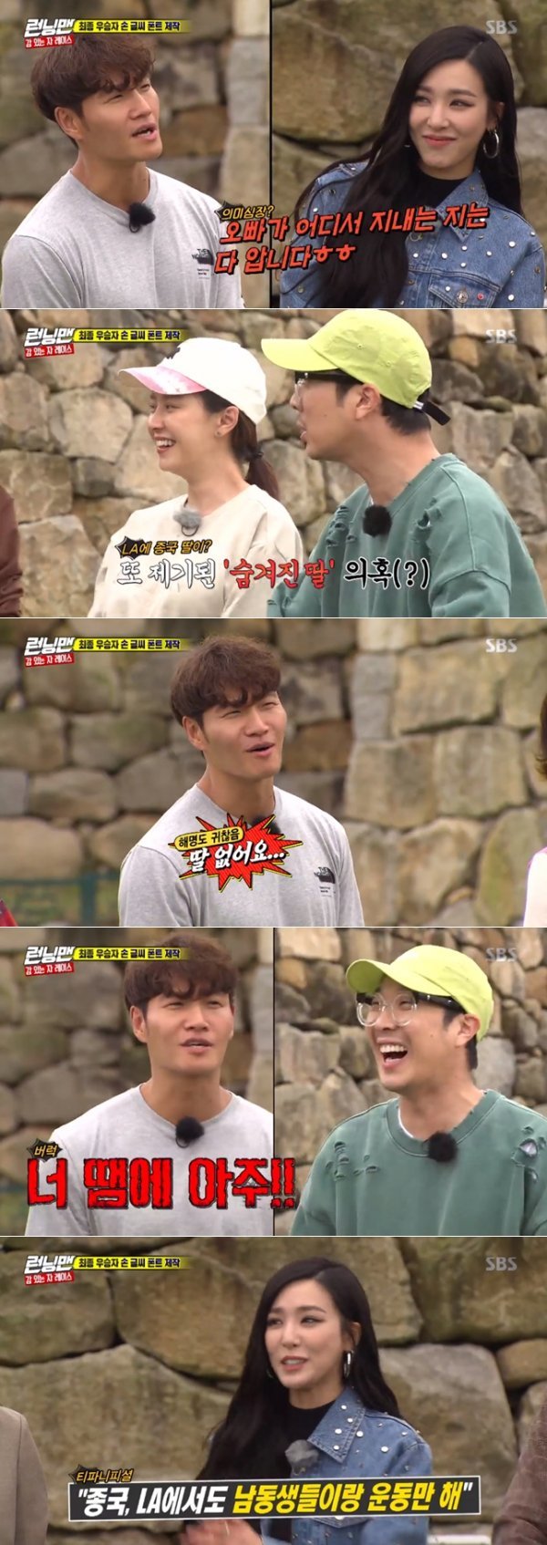 이에 하하는 진지하게 “딸 이야기 하지 말라고. 다 덮었는데”라고 말했다. ‘김종국이 미국에 숨겨놓은 딸이 있다’고 루머를 양산(?)했던 거짓 농담을 또 한 번 한 것. 김종국은 “너 때문에 사람들이 진짜 딸이 있는 줄 안다”고 억울해해 웃음을 자아냈다. 티파니 영은 “친한 지인이 많아서 소식을 들었다. 남동생들과 운동만 하더라”고 의혹을 불식시켰다.