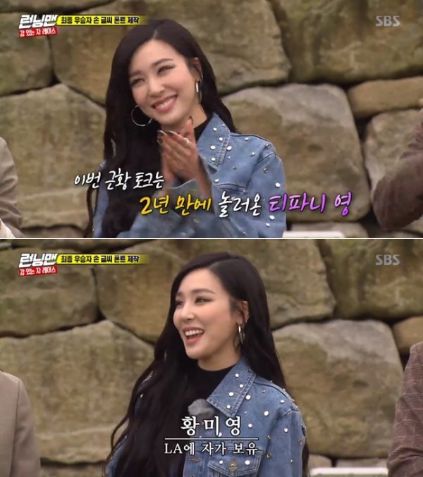 티파니 영은 6일 방송된 SBS ‘런닝맨’에 박유나, 미나, 황치열과 함께 게스트로 출연했다.