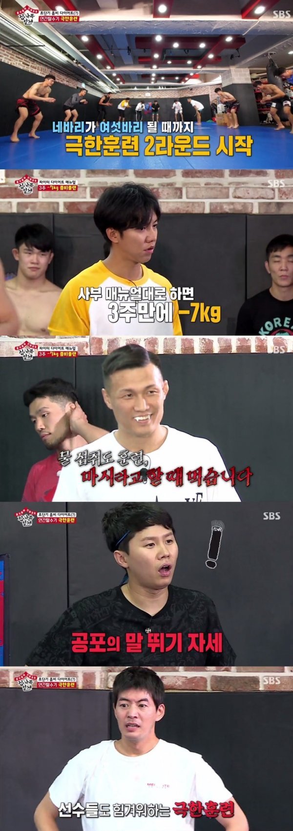한편 멤버들은 줄리엔강과 함께 실제 선수들이 하는 강도의 훈련에 돌입했다. 정찬성은 "내 매뉴얼 대로 훈련하면 3주에 7kg 정도를 뺄 수 있다.", "물도 내가 마셔도 된다고 할 때 마셔라."고 하며 FM사부의 모습을 보여 멤버들을 긴장하게 했다. 선수들도 고개를 절레절레 흔드는 공포의 말 뛰기 자세와 버피 테스트, 플라잉 니킥을 연결해서 훈련하는 과정에서 멤버들은 울부짖으며 괴로워했다. 땀을 뻘뻘 흘리며 괴로워 하는 멤버들의 모습은 시청자들에게 역대급 웃음 폭탄을 안기며 8.5%%로 최고의 1분을 기록했다.