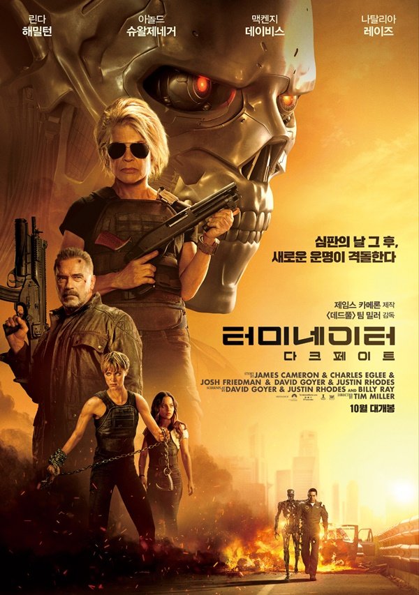 한편 \'터미네이터: 다크 페이트\'는 심판의 날 그 후, 미래에서 온 ‘슈퍼 솔져’ 그레이스 VS 최첨단 기술력으로 무장한 최강의 적 터미네이터 ‘Rev-9’이 벌이는 새로운 운명의 격돌을 그린 액션 블록버스터. \'터미네이터: 다크 페이트\'는 SF 액션 블록버스터의 새 장을 열며 할리우드 액션 블록버스터의 기념비적인 작품으로 손꼽히는 \'터미네이터 2\'의 이야기를 이어나갈 직접적인 후속 작품으로, 다시 한번 전 세계에 신드롬을 일으킬 준비를 마쳤다.