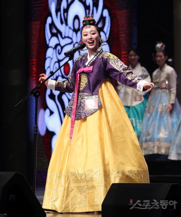 9일 서울 광진구 유니버셜아트센터에서 ‘2019 세종대왕 소헌왕후 선발대회’가 열렸다. 소헌왕후 부문에 참가하는 임수민이 자신을 어필하고 있다. 김진환 기자 kwangshin00@donga.com