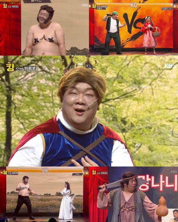 KBS 2TV \'개그콘서트(이하 개콘)\' 속 코너 \'킹 오브 캐릭터\'에서 유민상이 울버린, 저팔계, 동화 속 왕자님, 망나니 등 찰떡분장으로 카멜레온 같은 매력을 발산하고 있다. 이에 코너를 더욱 풍성하게 만드는 그의 활약들을 살펴봤다.