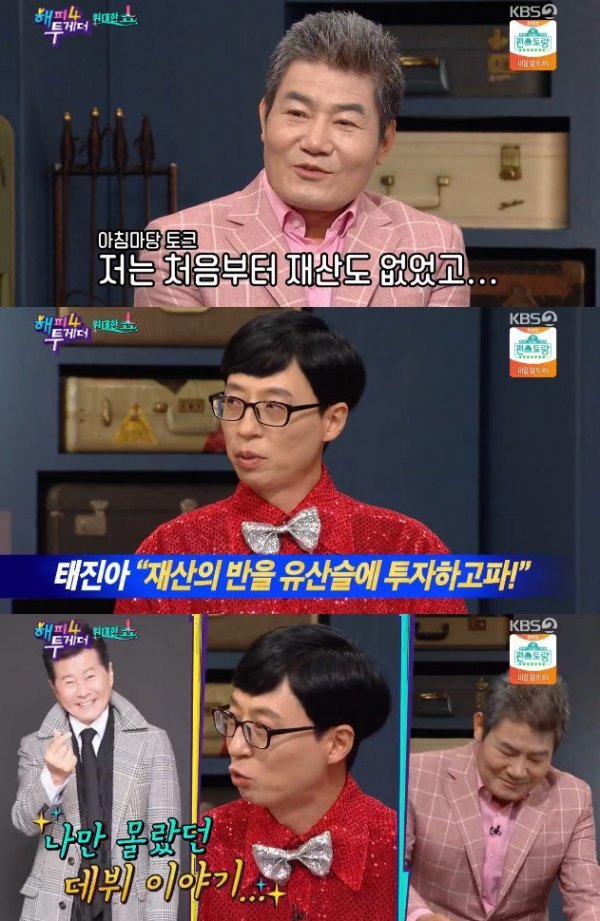그러면서 "태진아가 먼저 방송을 통해서 재산의 반을 투자하고 싶다고 했다. 방송 외적으로 유산슬을 양보해달라고 했고, 나보고 투자하라고 했다"고 비화를 말했다.