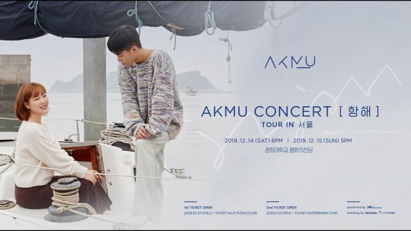 AKMU 서울 콘서트는 오는 31일 오후 8시 옥션티켓을 통해 1차 일반 예매가 시작된다. 이후 11월 1일 오후 8시 인터파크 티켓에서 2차 일반 예매가 가능하다.