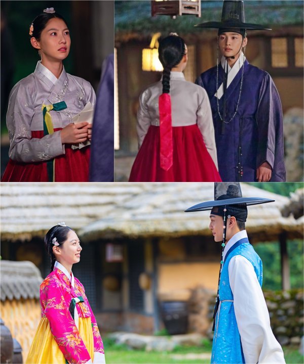 오늘(29일) 공개된 스틸컷에는 마훈과 개똥이의 눈물로 얼룩진 한 때와 달콤한 한 때가 모두 담겨있어 호기심을 자극한다. 먼저, 서로를 아련하게 바라보는 마훈과 개똥이의 모습이 눈에 띈다. 눈시울이 붉어진 마훈과 눈물을 흘리고 있는 개똥이는 보는 이들까지 안타깝게 만들어 두 사람 사이에 어떤 갈등이 일어난 건지 궁금케 한다. 그러나 마주보고 있는 스틸컷에서는 마훈과 개똥이 모두 얼굴에 환한 미소가 가득해 정반대의 분위기가 감돈다. 똑같이 눈을 마주치고 있지만 반전 분위기를 담고 있는 이번 스틸컷은 마훈과 개똥이의 로맨스가 어떤 방향으로 흘러갈지 예측 불가하게 만든다.