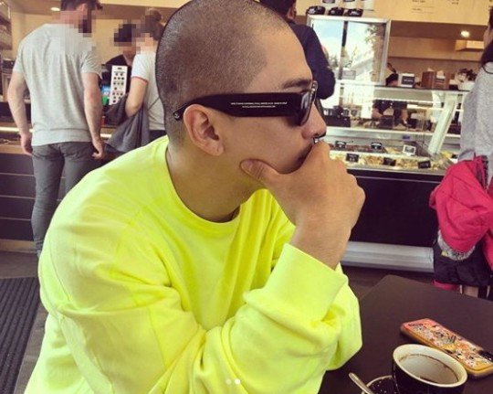공개된 사진 속 태양은 삭발에 가까운 헤어스타일로 시선을 사로잡는다. 또 여유롭게 커피를 마시고 있는 모습이 눈길을 끈다.