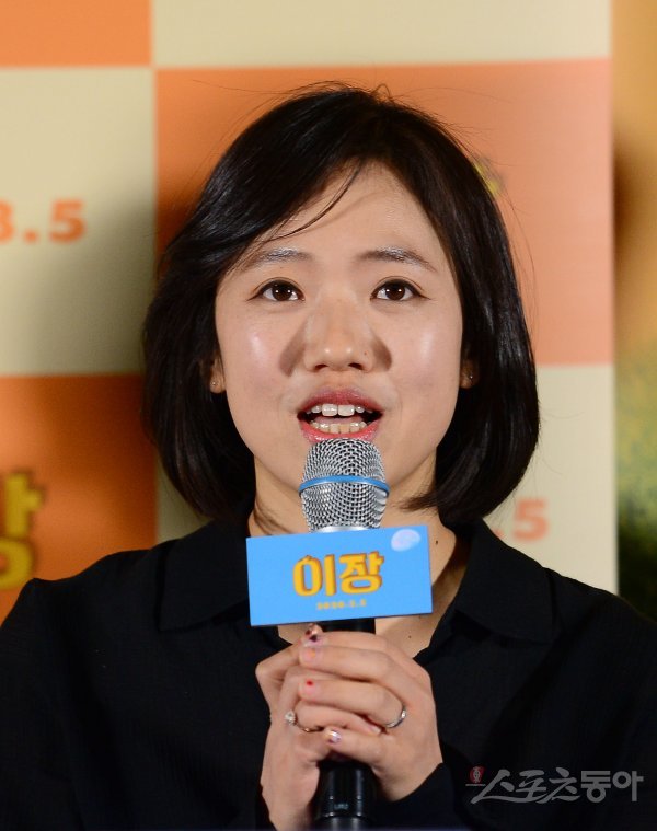 배우 윤금선아가 20일 서울 광진구 롯데시네마 건대입구에서 열린 영화 ‘이장’ 언론시사회에서 참석해 취재진의 질문에 대답하고 있다.