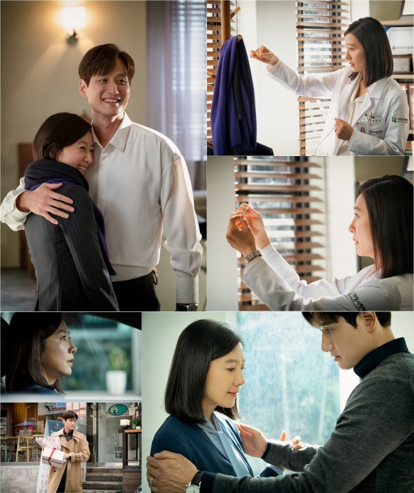 급기야 이태오의 뒤를 쫓는 지선우는 케이크와 꽃을 들고나온 남편을 발견한다. 불안과 배신감으로 정처 없이 흔들리는 지선우의 시선은 무엇을 목격한 것일까. 이어진 사진 속 지선우와 이태오의 온도 차 다른 분위기가 흥미롭다. 불안하고 위태로운 감정을 간신히 부여잡고 있는 지선우와 이를 걱정스럽게 바라보는 이태오. 두 사람 사이에 흐르는 묘한 긴장감이 궁금증을 증폭시킨다.