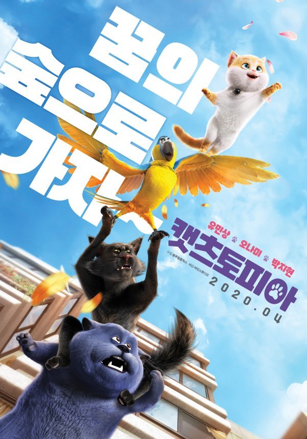공개된 메인 포스터는 천진난만한 표정의 아가냥 ‘케이프’를 비롯해 앵무새 ‘맥’과 카리스마 넘치는 검은 고양이, 뚱보냥 아빠 ‘블랭키’까지 개성 넘치는 동물들이 등장해 눈길을 사로잡는다. “꿈의 숲으로 가자~”라는 카피와 함께 주인공들이 창밖으로 하늘 높이 점프하는 순간을 포착해 과연 집 밖으로 뛰쳐나간 이들에게 어떤 일들이 기다리고 있을지 궁금증이 더해진다. 역동적이면서도 신선한 비주얼의 메인 포스터를 공개하며 기대감을 자극하는‘캣츠토피아’는 4월 개봉한다.