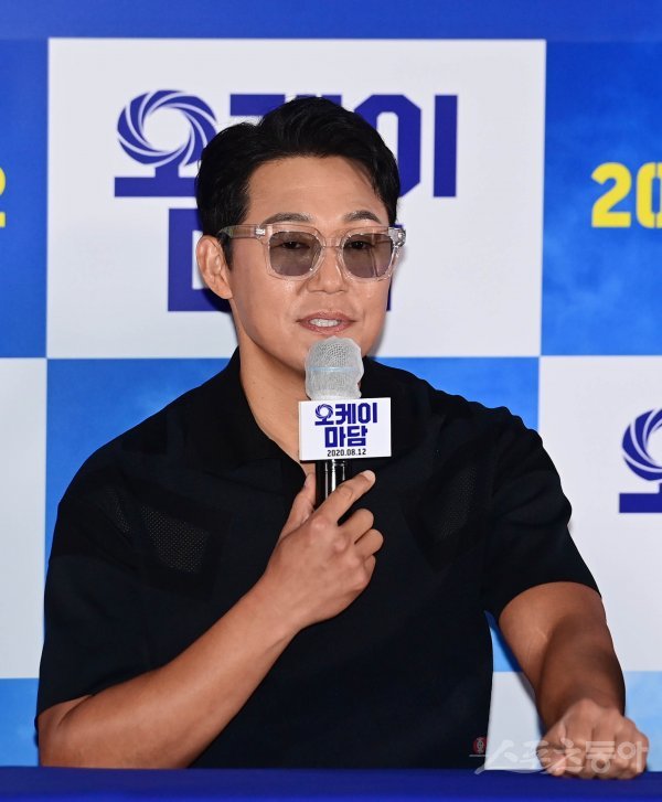 배우 박성웅이 3일 서울 강남구 삼성동 메가박스 코엑스점에서 열린 영화 ‘오케이 마담’ 언론시사회에서 인사말을 하고 있다.