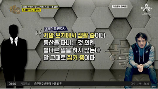이에 한 연예부기자는 “지난달 22일 조재현 측 변호사가 \'조재현은 지방 모처에서 생활 중이다. 등산을 다니는 것 외엔 별다른 일을 하지 않는다. 말 그대로 칩거 중이다. 그리고 미투 관련 재판을 위해 불규칙적으로 서울에 올라온다\'고 주장했다"고 전했다.