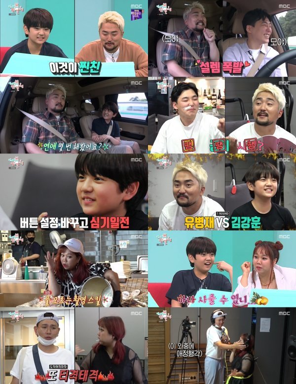 이어 세 사람은 자존심을 건 축구게임을 펼쳤다. “어린이 이겨서 뭐하냐”라던 유병재와 유규선은 승부욕에 이글이글 타오르는 눈빛으로 게임에 임했다. 팽팽한 기싸움과 접전 끝에 김강훈을 이긴 두 사람은 환호의 '깡' 세리머니까지 펼쳤고, MC들의 야유가 쏟아졌다.