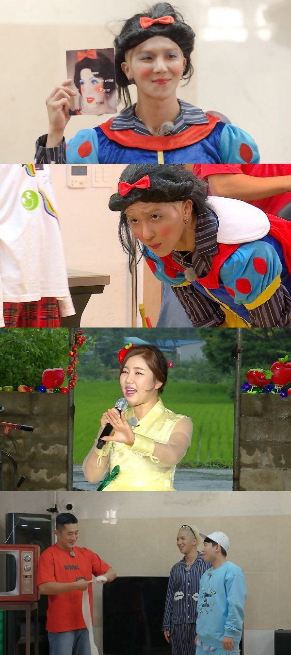또한 송민호는 ‘백설공주’ 분장에 도전했다. 평소 수준급의 미술 실력을 자랑하는 송민호는 미션 성공을 위해 직접 분장을 시도했고 초스피드로 아름다운 ‘백설공주’로 변신해 ‘분장 끝판왕’다운 면모를 뽐냈다. 평소 분장이 생활화 되어있는 유세윤, 양세형, 장도연 또한 송민호의 분장 실력에 감탄을 숨기지 못했다.