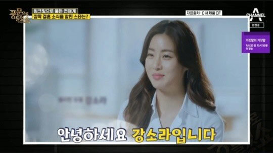 24일 방송된 채널A ‘풍문으로 들었쇼’(이하 풍문쇼)에서 강소라의 결혼 소식을 다뤘다. 지난 17일 자신의 팬카페를 통해 직접 결혼 소식을 알린 강소라. 애초 29일 예식이 예정되어 있었지만 코로나 19 확산세로 간소하게 결혼식을 치르는 것으로 알려졌다.