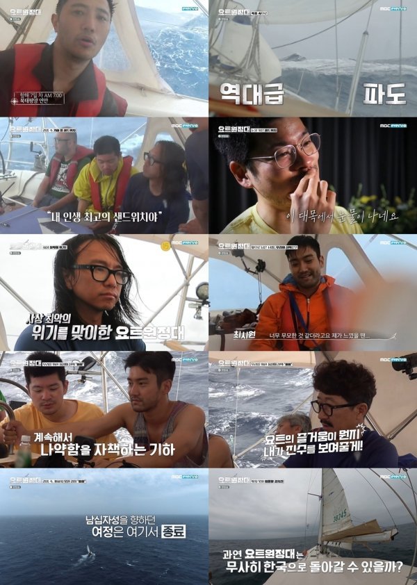 9월 21일 방송된 MBC에브리원 ‘요트원정대’ 6회에서는 거센 폭풍우가 몰아치는 망망대해 속 극한에 몰리는 진구-최시원-장기하-송호준의 모습이 담겼다. 항해 이후 최악의 날씨와 맞닥뜨린 ‘요트원정대’는 역대급 파도와 강풍을 만나 살아남기 위한 항해를 펼쳤다. 대자연의 위력을 온몸으로 체감하는 네 남자의 리얼 모험기가 생생하게 시청자들에게 전달됐고, 방송 내내 포털사이트 실시간 검색어에 오르며 화제를 모았다.