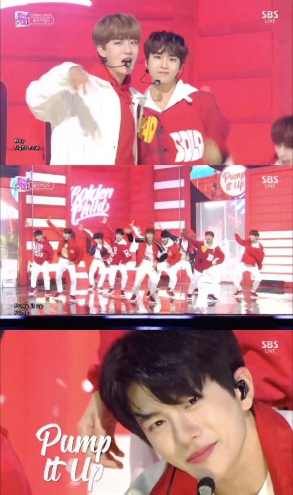 골든차일드(이대열, Y, 이장준, TAG, 배승민, 봉재현, 김지범, 김동현, 홍주찬, 최보민)는 11일 방송된 SBS ‘인기가요’에 출연해 신곡 ‘Pump It Up’ 컴백 무대를 꾸몄다.