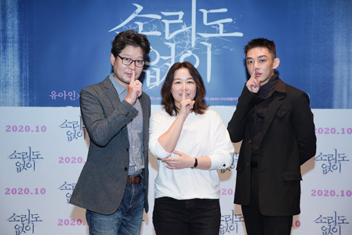 영화 ‘소리도 없이’ 배우 유재명, 홍의정 감독, 유아인(왼쪽부터). 사진제공|에이스메이커무비웍스