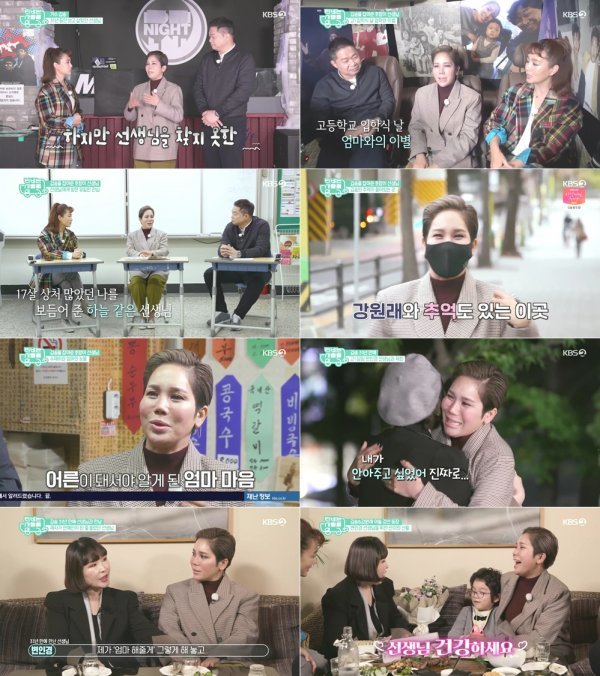 어제(2일) KBS 2TV 휴먼 예능 ‘TV는 사랑을 싣고’에서 강원래의 아내이자 가수인 김송이 31년 만에 고1 담임 선생님과 감동적 재회를 했다.