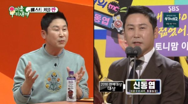 신동엽은 “시상식 사회를 많이 봐오지 않았나. 강호동이 또 받고 유재석이 또 받는 모습을 지켜봤다. 상 받는 것도 좋지만 계속 MC 보는 것도 좋은 것이라고 생각했다. 그런데 상을 받아보니까 상 받는 게 훨씬 좋더라. 얘네들도 참 좋았겠구나 싶었다”고 털어놨다.