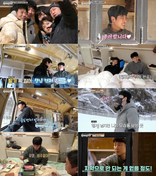 또한 김동욱은 이날 성동일이 준비한 황태 국수 먹방에 낮잠을 즐기는 등 힐링 가득한 시간을 만끽했다. 모두가 잠든 사이 눈 내리는 창밖을 바라보며 제대로 \'눈멍\'에 빠져들기도. 함께 눈을 보고 싶은 마음에 멤버들을 깨울까 말까 진지하게 고민하는 김동욱의 모습은 웃음을 자아냈다. 이어 김동욱은 “느낌이 (손님이 아니라) 원래 있었던 사람 같다”라고 해맑게 웃으며 ‘바퀴 달린 집’에 완벽 적응한 모습을 보였다.
