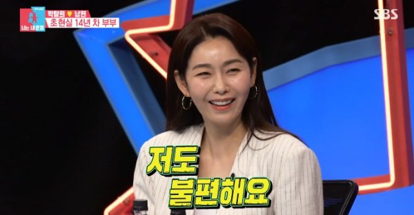 박탐희는 “영상 보면 다 남편들이 사랑꾼이다. 정말 저런 남편들도 있겠지만 저렇게 많을까 싶다. 내가 진짜 현실 부부인 것을 보여주고 싶다”고 말했다. 이에 MC김숙은 “더는 남편과 남녀 사이 아니다, 스킨십이 없다는 말이 무슨 말이냐”고 물었다.
