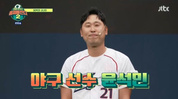 윤석민은 15일 방송된 JTBC ‘뭉쳐야 찬다 시즌2’에서 진행된 축구 오디션에 등판했다.